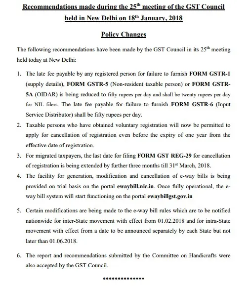 25Th Gst Council Meeting Press Release : Mail should be posted no later close of.