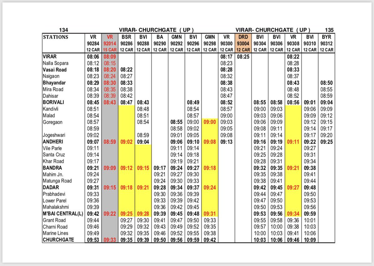 Bhayandar To Churchgate Train Time Table - Bhayandar churchgate fast local trains timings for mumbai local, bhayandar to churchgate trains schedule running on western railway route.