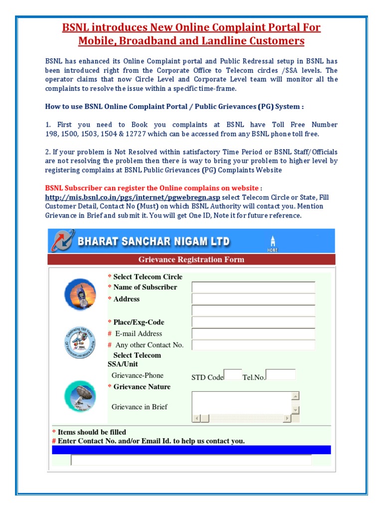 Bsnl Grievance Redressal - This portal has been created to provide convenience to citizens by allowing them to lodge a grievance through their mobile phones or.