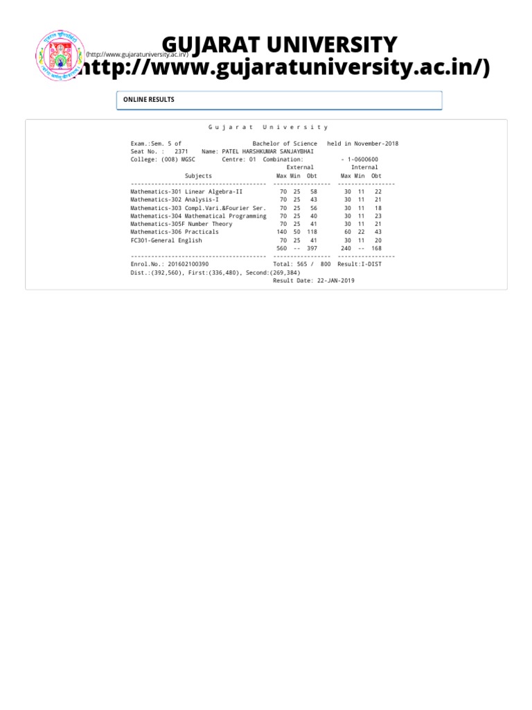 Gujarat University Result By Name / Photo i card, any one from election card, adhar card, pan card, pass port 4.
