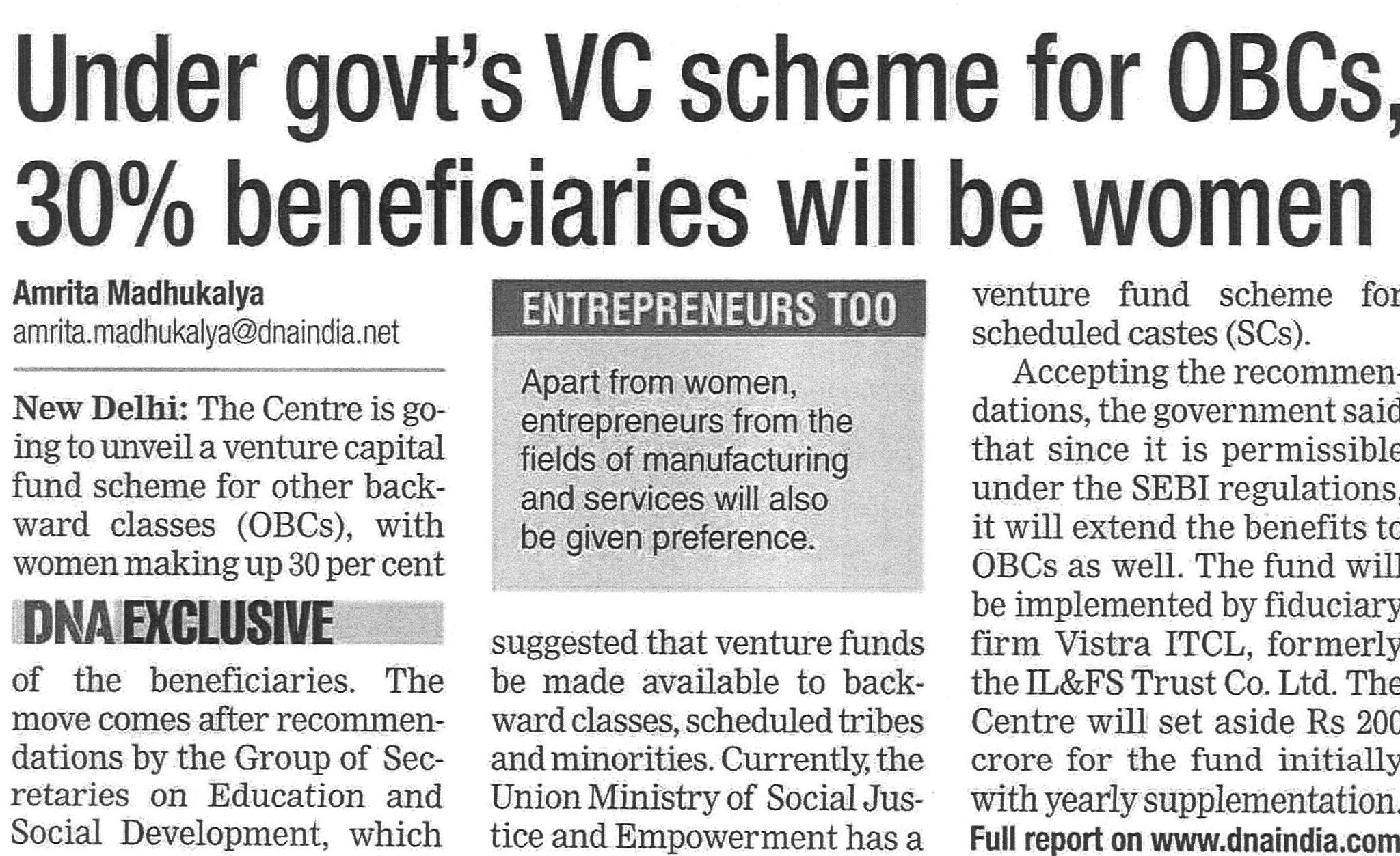 Venture Capital Fund Scheme For Scheduled Caste / According to its official website, the objective of the venture capital fund scheme for scheduled caste entrepreneurs is to promote their entrepreneurship.