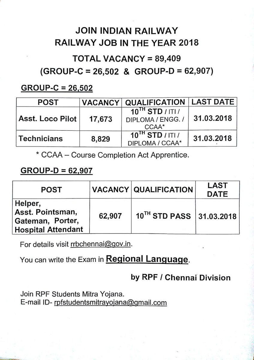 Www Rrbchennai Gov In Rpf / Rrb chennai also sends an sms regarding the release of the admit card on the candidates' registered mobile number.